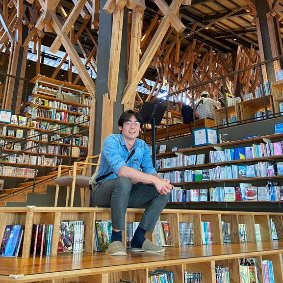 Figure 2: A picture of me in the Yusuhara Community Library 梼原町立図書館