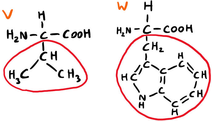 Figure 3: Valine (left), Tryptophan (right)