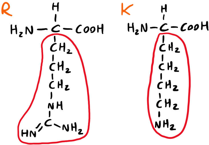Figure 9: Arginine (R--->), Lysine (K--->)